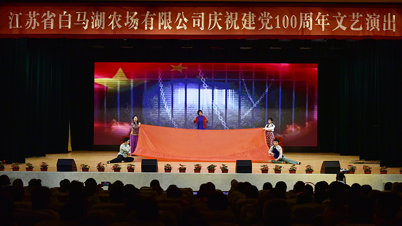 為慶祝中國共產(chǎn)黨成立100周年,回顧中國共產(chǎn)黨團結(jié)帶領(lǐng)全國各族人民戰(zhàn)勝各種艱難險阻、譜寫中華民族自強不息的光輝歷程,感悟中國共產(chǎn)黨歷經(jīng)百年始終不渝的初心使命,共同抒發(fā)在黨的堅強領(lǐng)導下奮進新時代的壯志豪情,讓廣大干部職工在紅色氛圍中學習黨史、展示風采,推進黨史學習教育和“四史”宣傳教育不斷走深走實,6月29日下午,白馬湖農(nóng)場公司在職工會堂成功舉辦了“百年禮贊、紅心向黨 ”慶祝中國共產(chǎn)黨成立100周年文藝演出。