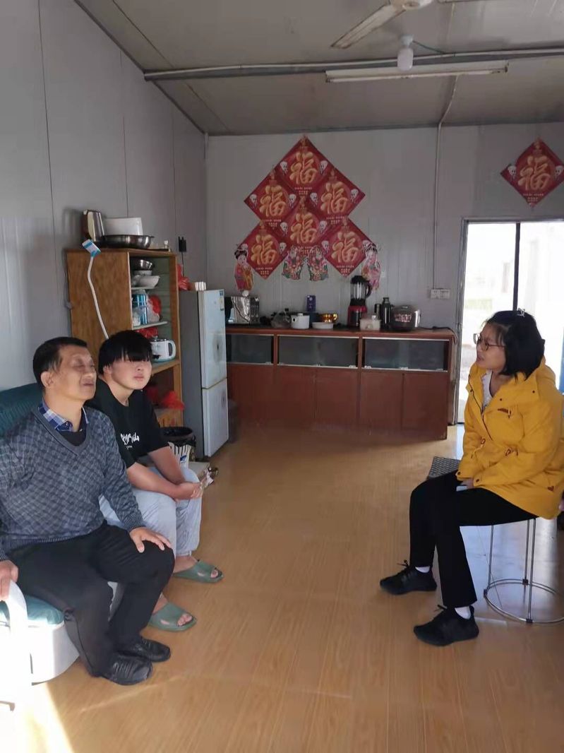 她出月子后,于1017帶著慰問金、大米、食用油等和李書記一起來到虞道虎家探望。通過深入交流了解到,他媽媽是外地人,在他4歲的時候拋下他就再也沒有回來,他爸爸身體殘疾又患有糖尿病伴隨著并發(fā)癥,致使視力嚴重下降模糊看不清,原先還能靠開三輪車帶乘客掙點微薄的生活費,現(xiàn)如今也只能作罷,面對如此不堪重負的家庭生活和上學的雙重壓力,家庭收入幾乎為零,經(jīng)過村、鎮(zhèn)的申請,縣政府相關(guān)部門的審批,最終他爸爸獲得了殘疾補貼和民政低保收入,家庭全部收入也僅限于此。“黨員媽媽”王靖與虞道虎的交談中,得知他本人對未來很有想法,目前就讀于揚州技師學院,五年制大專,數(shù)控專業(yè),他計劃好好學習順利畢業(yè)后將專轉(zhuǎn)本,繼續(xù)學歷深造以便日后好去蘇南就業(yè),考慮蘇南相對高工資可以為窮困的家庭和年邁的父親減輕壓力。聽此,王靖很欣慰,勸導(dǎo)父親和虞道虎,困難是有,但是暫時的,只要虞道虎肯努力學習,保持積極樂觀的心態(tài),未來一定可期。